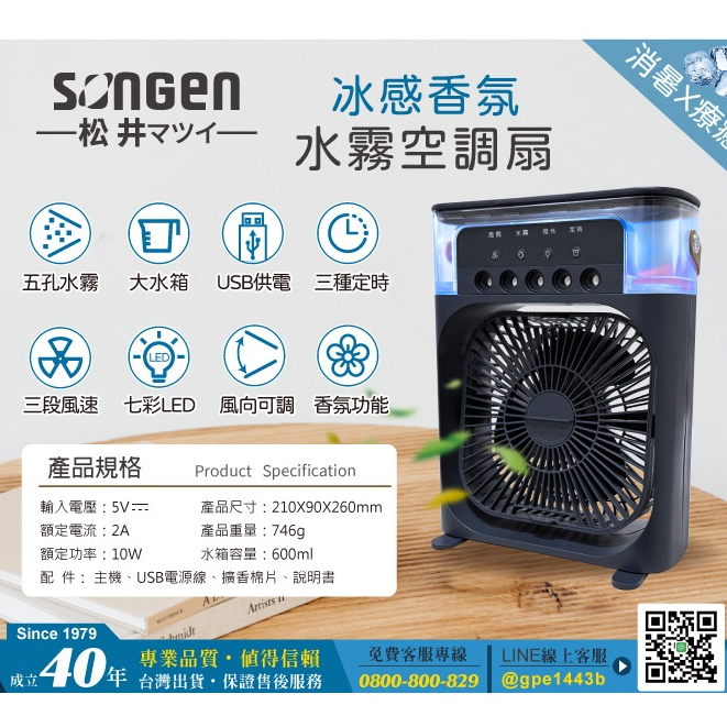 【SONGEN 松井】冰感香氛霧化水冷扇/風扇/香氛噴霧扇/加濕器/空調扇 SG-0607