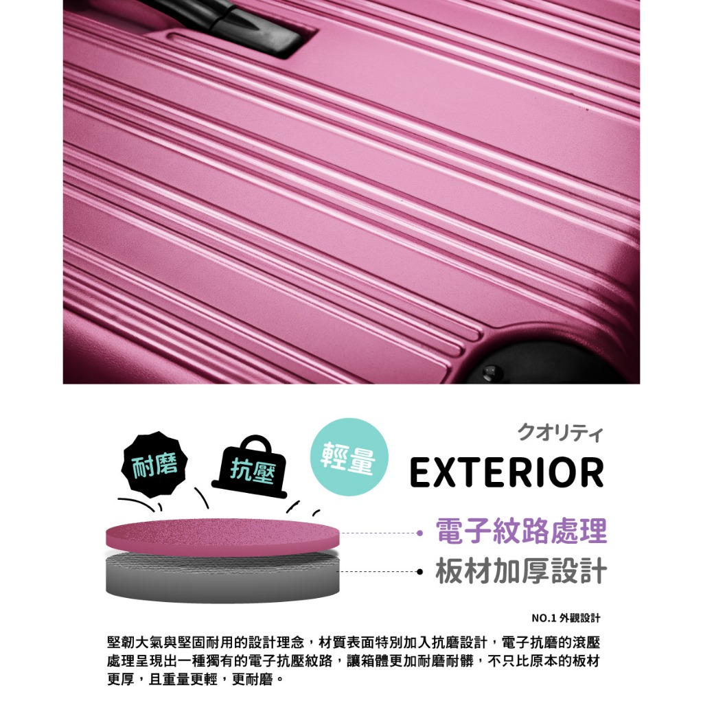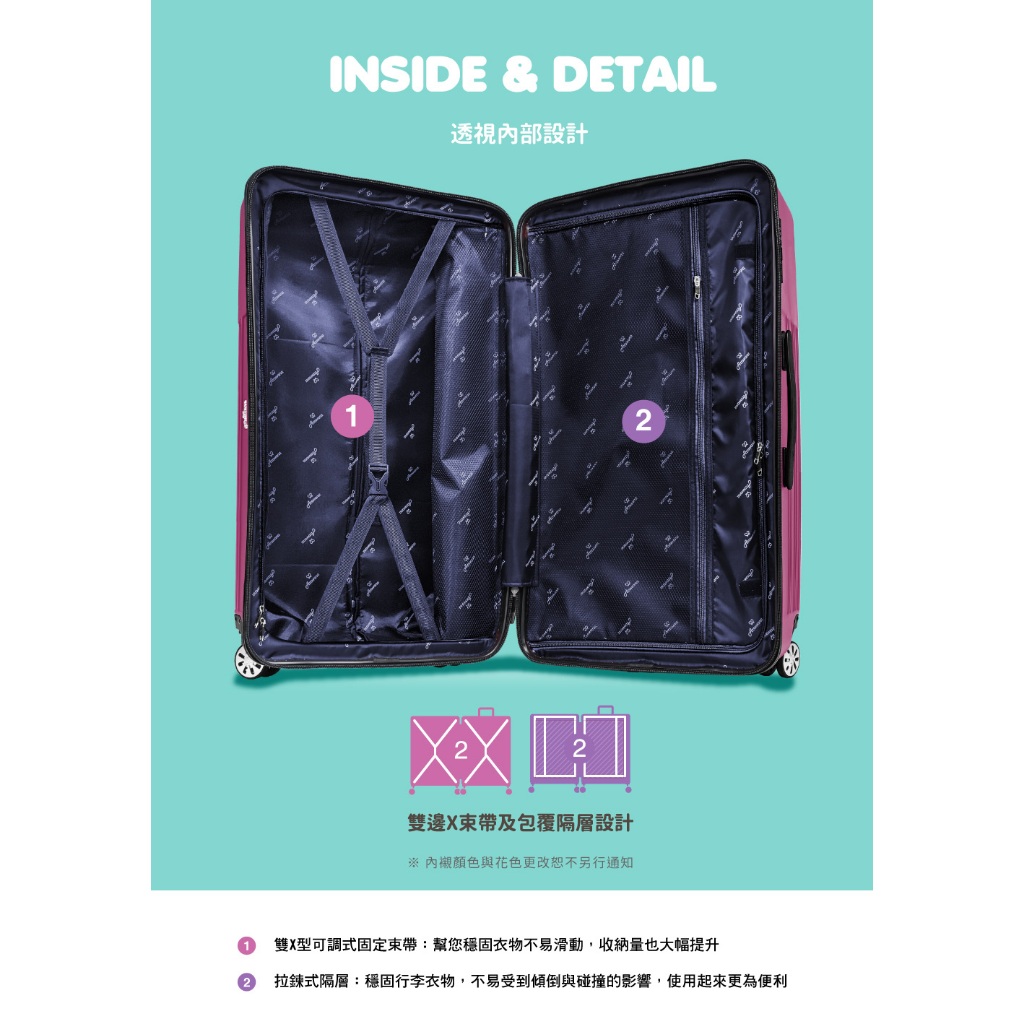 ●商品配件:彈簧飛機輪、TSA海關密碼鎖、隱藏式掛扣束帶、四角防撞金屬包角