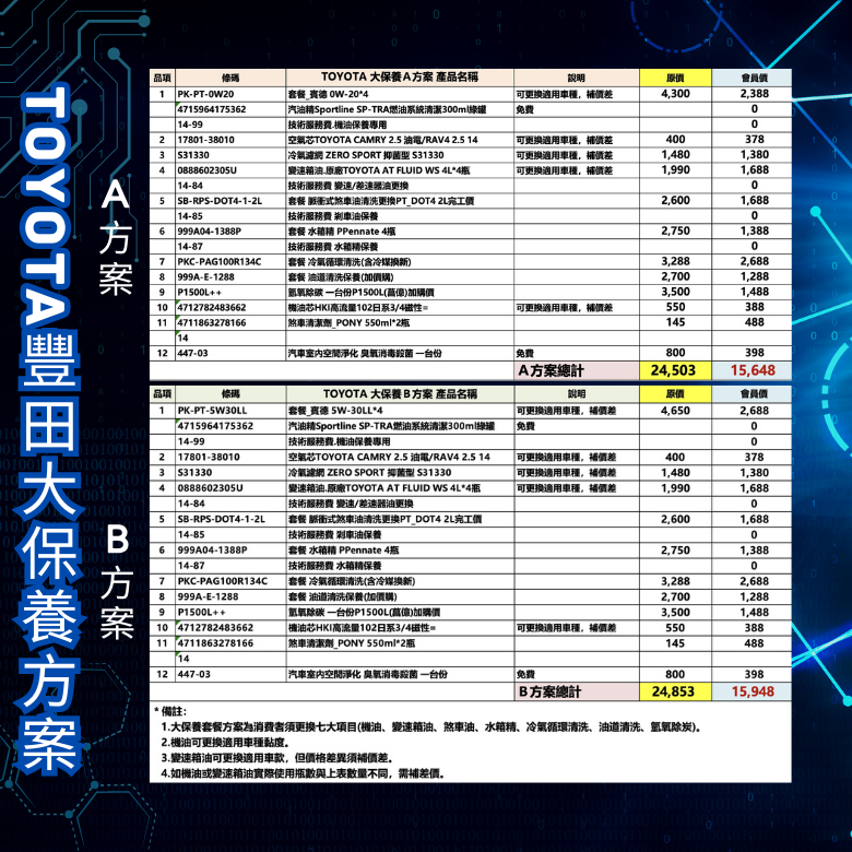 【VIP方案】國產車系-大保養-豐田汽車B方案。(消費積點:40)