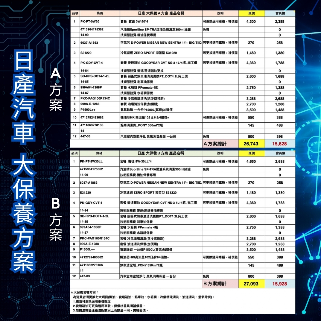 【VIP方案】國產車系-大保養-日產汽車B方案。(消費積點:40)