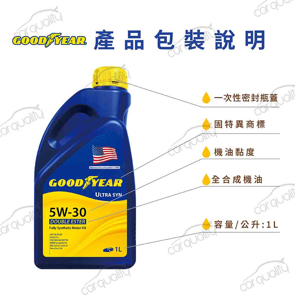 TOYOTA【固特異 GOODYEAR機油套餐】5W30雙酯ULTRA504/507 1L*5完工價
