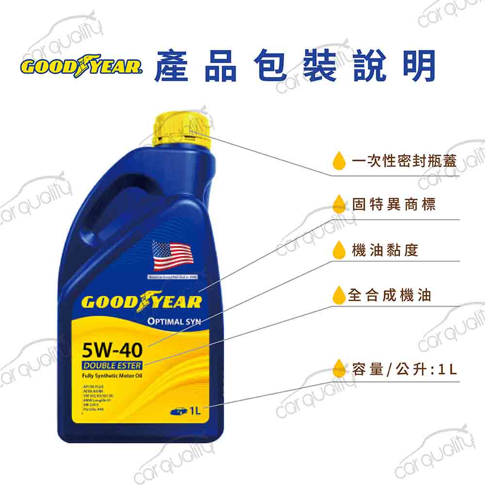 TOYOTA【固特異 GOODYEAR】機油套餐 5W40 雙酯 OPTIMAL 1L*4 完工價